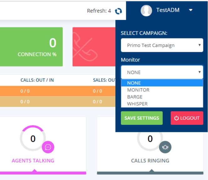 MONITOR – Allows you to listen in to a live call that your agent is currently in.